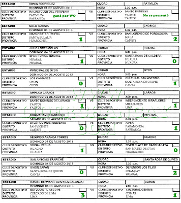 Resultados de la Copa Perú etapa departamental Lima partidos de ida jugados el 3 y 4 de agosto 2013.